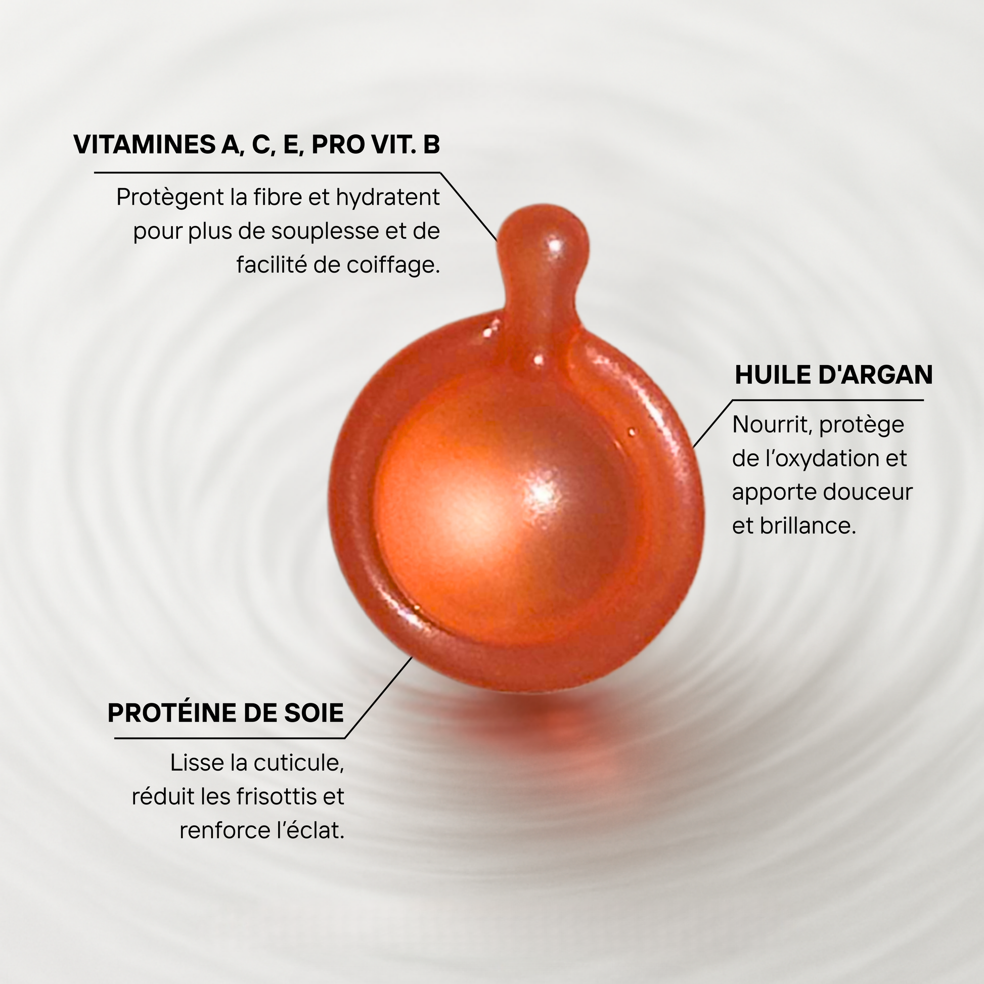 Nous recommandons 2 à 3 capsules par semaine, en cure régulière. Pour un résultat optimal, appliquez après le shampooing sur cheveux essorés — ou sur cheveux secs pour une touche de brillance instantanée.